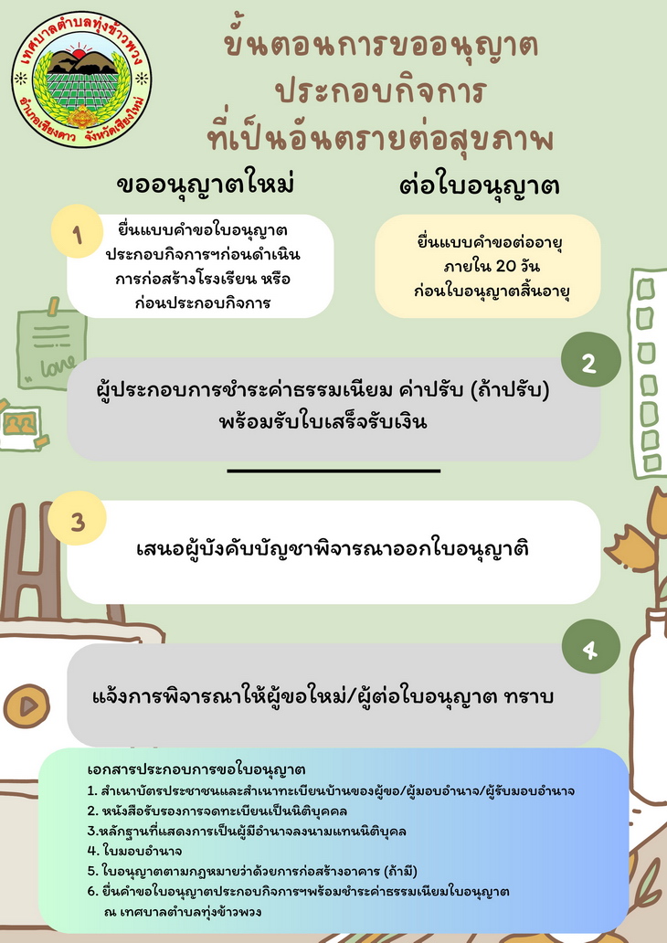 เรื่อง : ประชาสัมพันธ์ ทต.ทุ่งข้าวพวง ขั้นตอนการขออนุญาตประกอบกิจการที่เป็นอันตราย |