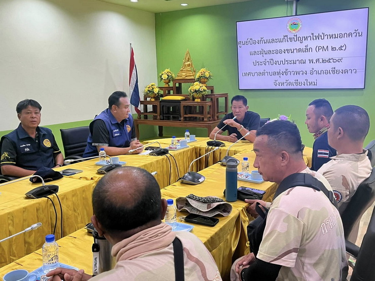 ทต.ทุ่งข้าวพวง นำโดย นายศรีวอน บุญกองรัตน์ (นายกเทศมนตรีตำบลทุ่งข้าวพวง) พร้อมด้วยคณะผู้บริหาร , ปลัดเทศบาลตำบลทุ่งข้าวพวง , หัวหน้าส่วนราชการ , จนท.งานป้องกัน ฯ ร่วมกับ ชมรมกำนันผู้ใหญ่บ้านตำบลทุ่งข้าวพวง , กองร้อย อส.อ.เชียงดาวที่ 6 , สมาชิกกองอาสารักษาดินแดน อส.จ.กาญจนบุรี ได้ดำเนินการประชุม เพื่อเตรียมความพร้อมภารกิจดับไฟป่า และส่งมอบกำลังพลจาก สมาชิกกองอาสารักษาดินแดน จ.กาญจนบุรี จำนวน 16 นาย เพื่อสนับสนุนภารกิจดับไฟป่าในพื้นที่ อ.เชียงดาว ณ ห้องมรกต เทศบาลตำบลทุ่งข้าวพวง อ.เชียงดาว จ.เชียงใหม่ ![]() ![]() สำนักงานเทศบาลตำบลทุ่งข้าวพวง