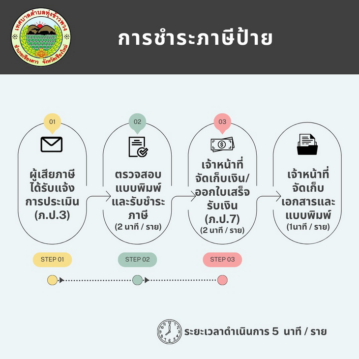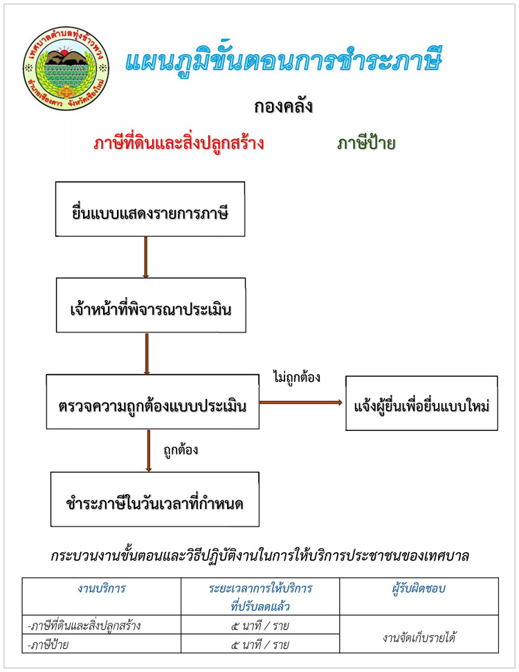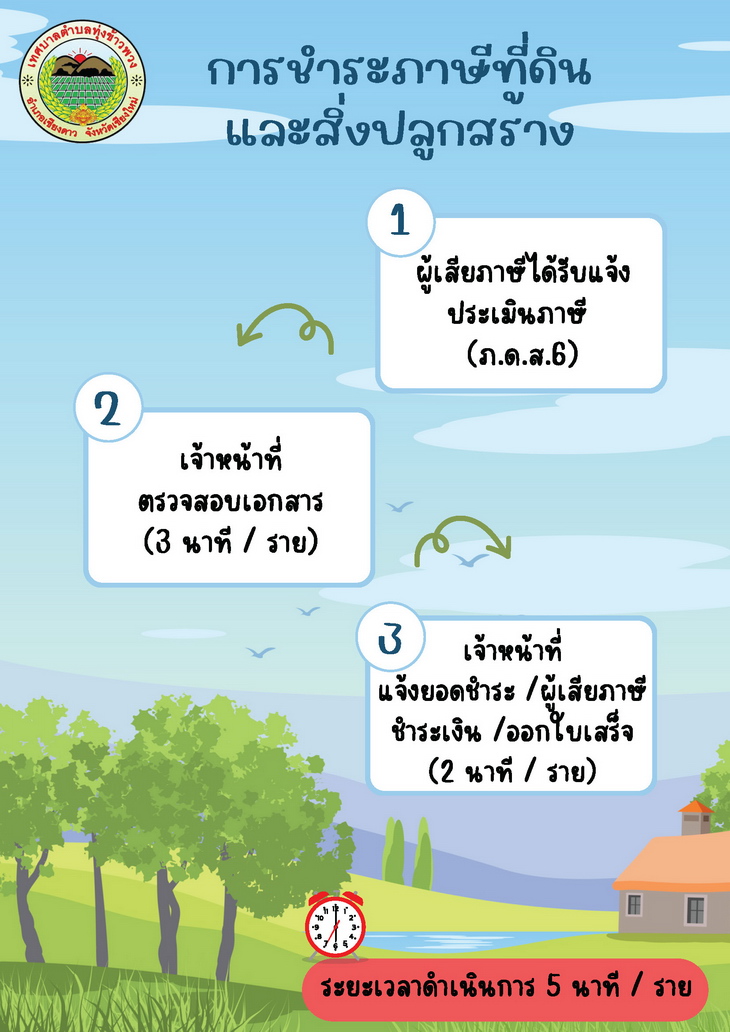 เรื่อง : ประชาสัมพันธ์ ขั้นตอนการชำระภาษีที่ดินและสิ่งปลูกสร้าง และภาษีป้าย |