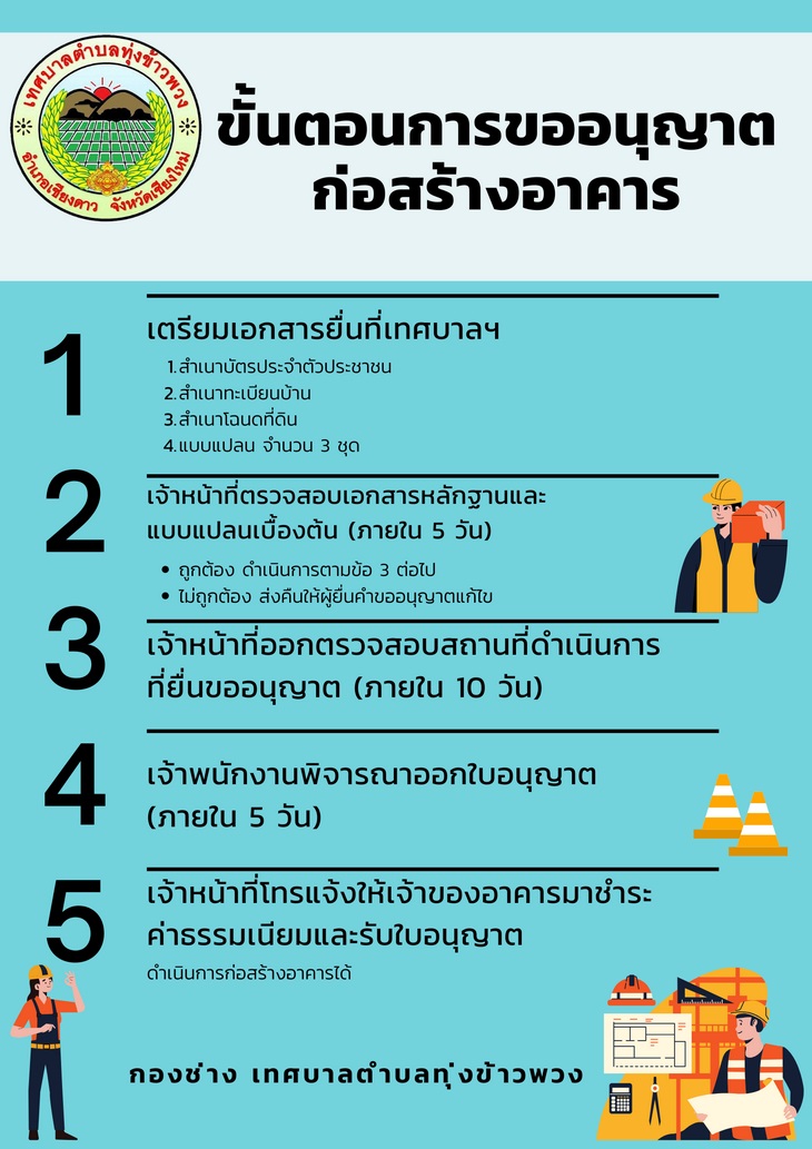 เรื่อง : ประชาสัมพันธ์ ทต.ทุ่งข้าวพวง ขั้นตอนการขออนุญาตก่อสร้างอาคาร |
