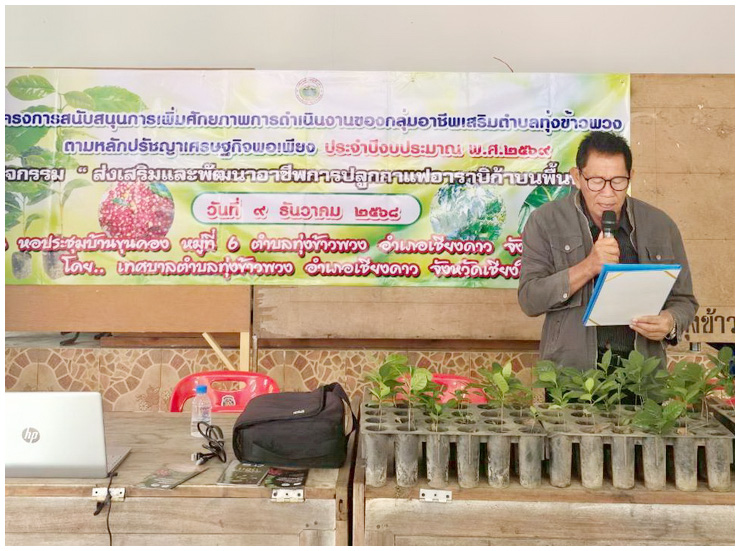 ทต.ทุ่งข้าวพวง ดำเนินโครงการ : ส่งเสริมสนับสนุนการเพิ่มศักยภาพการดำเนินงานของกลุ่มอาชีพเสริมตำบลทุ่งข้าวพวง ตามหลักปรัชญาเศรษฐกิจพอเพียง ประจำปีงบประมาณ พ.ศ. 2569 กิจกรรม ส่งเสริมและพัฒนาอาชีพการปลูกกาแฟอาราบิก้าบนพื้นที่สูง โดยมี นายศรีวอน บุญกองรัตน์ (นายกเทศมนตรีตำบลทุ่งข้าวพวง) เป็นประธานในพิธีเปิดโครงการ , นางสาวทิพย์สุดา ชัยเมืองใจ (หัวหน้าสำนักปลัดเทศบาล) เป็นผู้กล่าวรายงาน โดยวิทยากรได้รับเกียรติจาก ว่าที่ร้อยตรีภานุพงศ์ คำลือ (นักส่งเสริมและพัฒนาปฏิบัติหน้าที่หัวหน้าโครงการพัฒนาฟื้นฟูพื้นที่สูงห้วยเป้า) เป็นผู้บรรยายให้ความรู้และสาธิตปลูกกาแฟในภาคปฏิบัติ พร้อมด้วยคณะผู้บริหาร , สมาชิกสภาเทศบาล , เจ้าหน้าที่ , ผู้นำชุมชนและประชาชน ร่วมโครงการดังกล่าว ณ บ้านขุนคอง หมู่ 6 ต.ทุ่งข้าวพวง อ.เชียงดาว จ.เชียงใหม่ ![]() ![]() ![]() ![]() ![]() สำนักงานเทศบาลตำบลทุ่งข้าวพวง