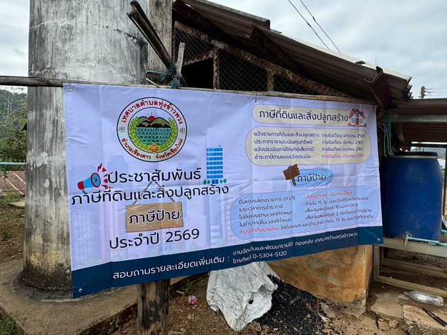 กองคลัง ทต.ทุ่งข้าวพวง ดำเนินการติดตั้งป้ายประชาสัมพันธ์ การชำระภาษีที่ดินและสิ่งปลูกสร้างและภาษีป้าย ปีงบประมาณ 2569 ณ พื้นที่ตำบลทุ่งข้าวพวง อ.เชียงดาว จ.เชียงใหม่ ![]() ![]() สำนักงานเทศบาลตำบลทุ่งข้าวพวง